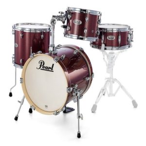 Bateria composta por bombo 16×14″, tom tom 10×7, timbalão 13×12, tarola 13×5.5, suporte de timbalão suspenso e hardware de elevação do bombo, peles Remo UT e Remo Powerstroke 3 no bombo, cascos de 6 camadas de 7.5mm de Poplar, ferragens cromadas.